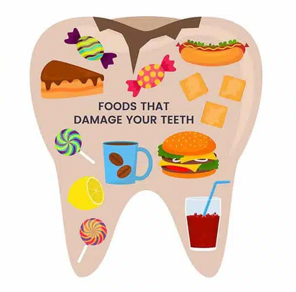 - Sugary Foods and Beverages: Sugar is one of the biggest enemies of tooth enamel. When bacteria in your mouth feed on sugar, they produce acids that erode enamel, leading to tooth decay.
