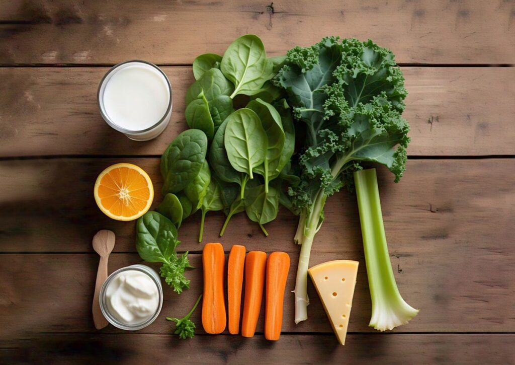 - Leafy greens like spinach and kale for their high vitamin C content.