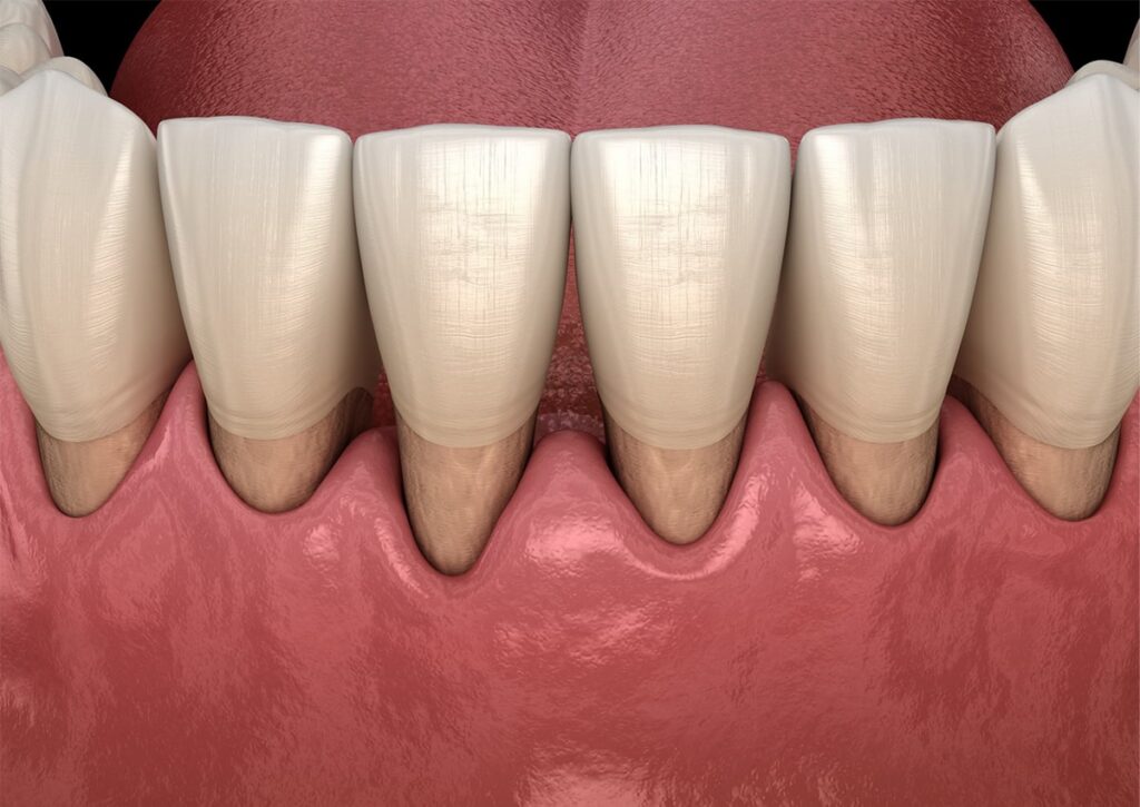 - Receding gums, where your teeth look longer than usual.