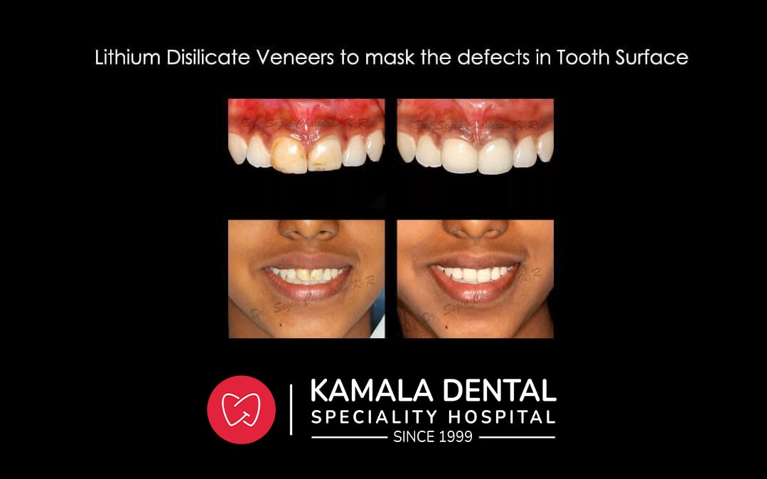 Lithium Disilicate Veneers to mask the defects in tooth surface Lithium Disilicate Veneers to mask the defects in tooth surfacePosted on: 09-Jun-2018 Happy to deliver a socially accepted beautiful smile for this young lady.