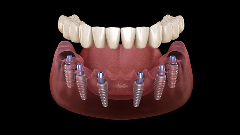 Implant-supported dentures or crowns