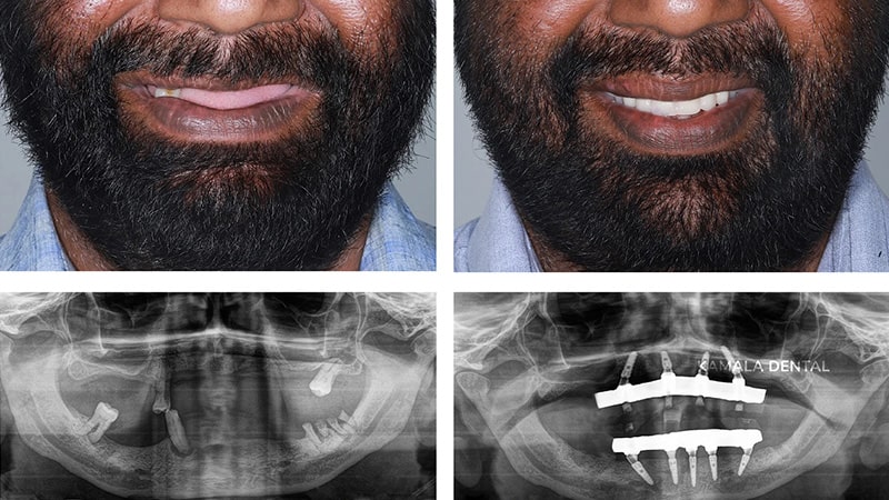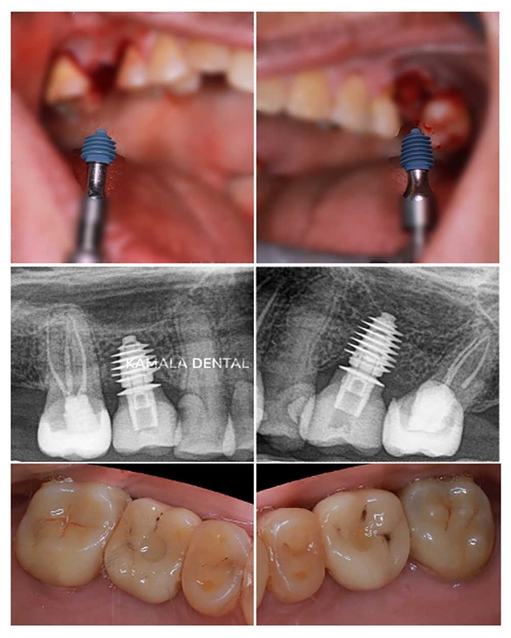 This is best achieved by using the patient’s own bone and/or artificial bone substitutes, often combined with growth modifiers such as Platelet Rich Fibrin (PRF). These advanced bioengineering techniques are routinely practiced at Kamala Dental Specialty Hospital, ensuring consistently high success rates for implant procedures.